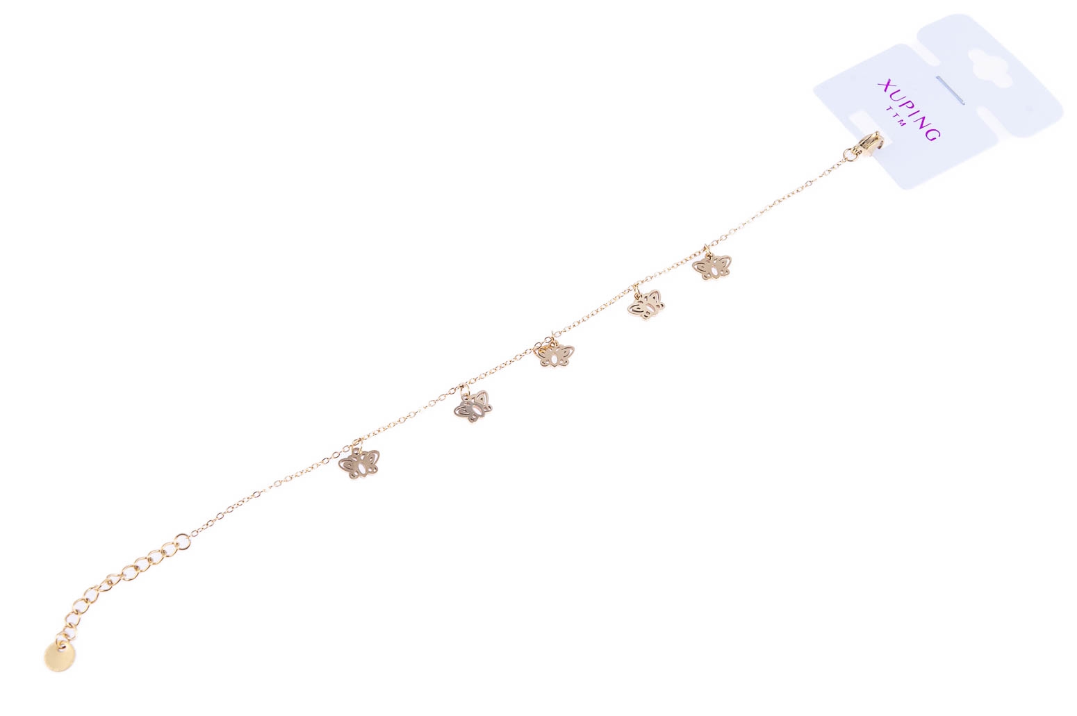 Elegancka złota bransoletka z uroczymi przywieszkami w kształcie motylków.Wymiary bransoletki: