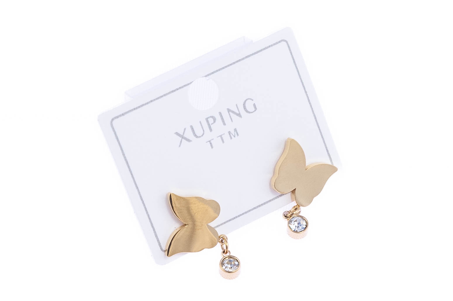 Eleganckie wiszące, złote kolczyki w kształcie motylków ozdobione dżetami.Wymiary kolczyków: