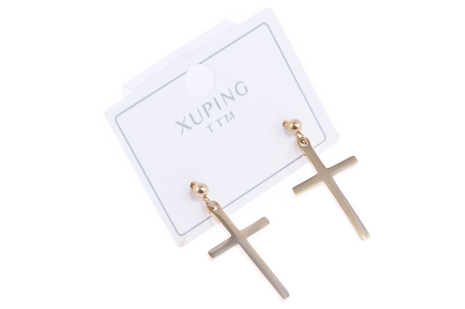 Eleganckie wiszące, złote kolczyki w kształcie krzyży.