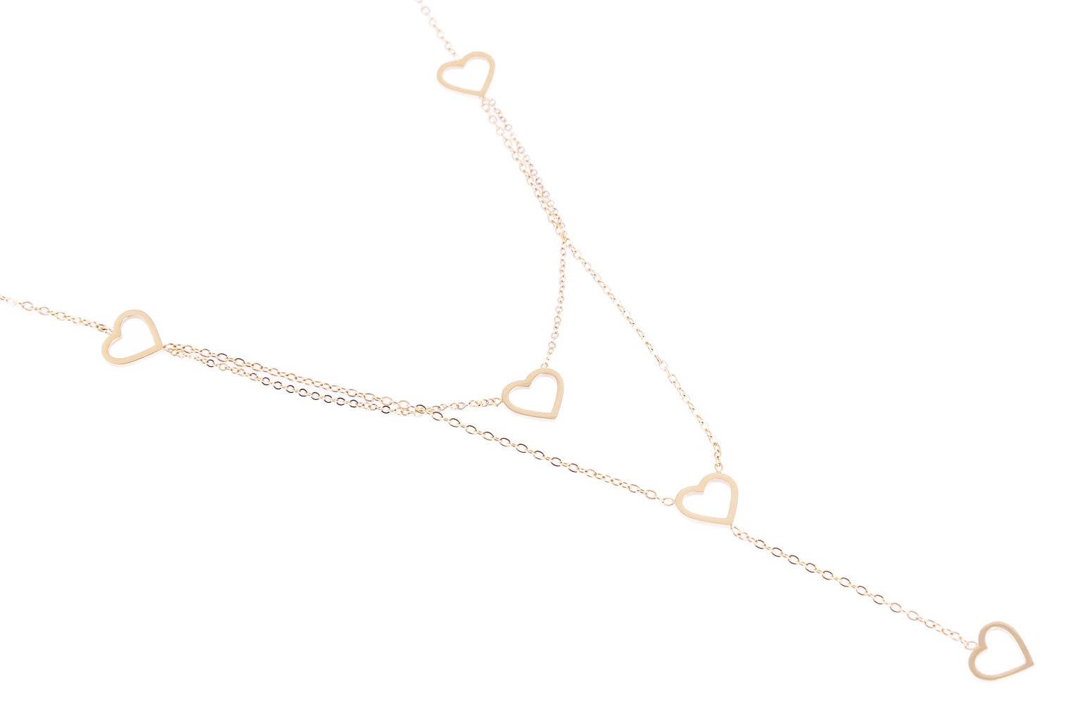 Elegancki łańcuszek z uroczymi przywieszkami w kształcie serduszek. Naszyjnik jest w kolorze złotym.Wymiary naszyjnika: