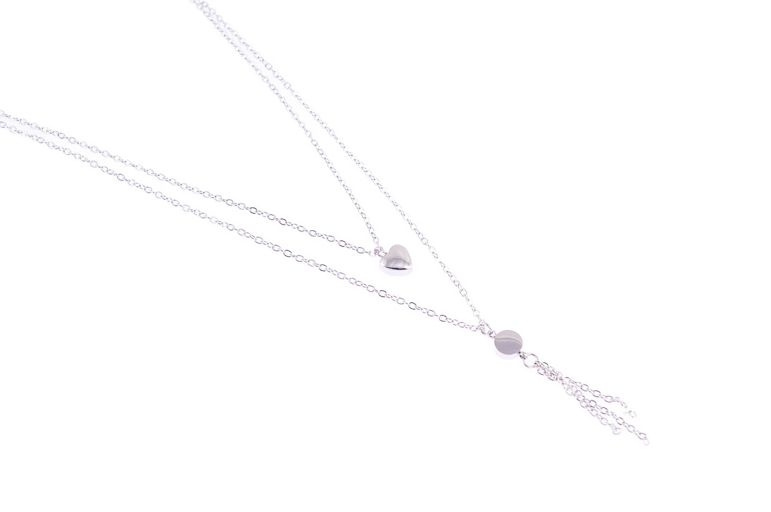 Elegancki łańcuszek z uroczą przywieszką w kształcie serduszka. Naszyjnik jest w kolorze srebrnym.Wymiary naszyjnika: