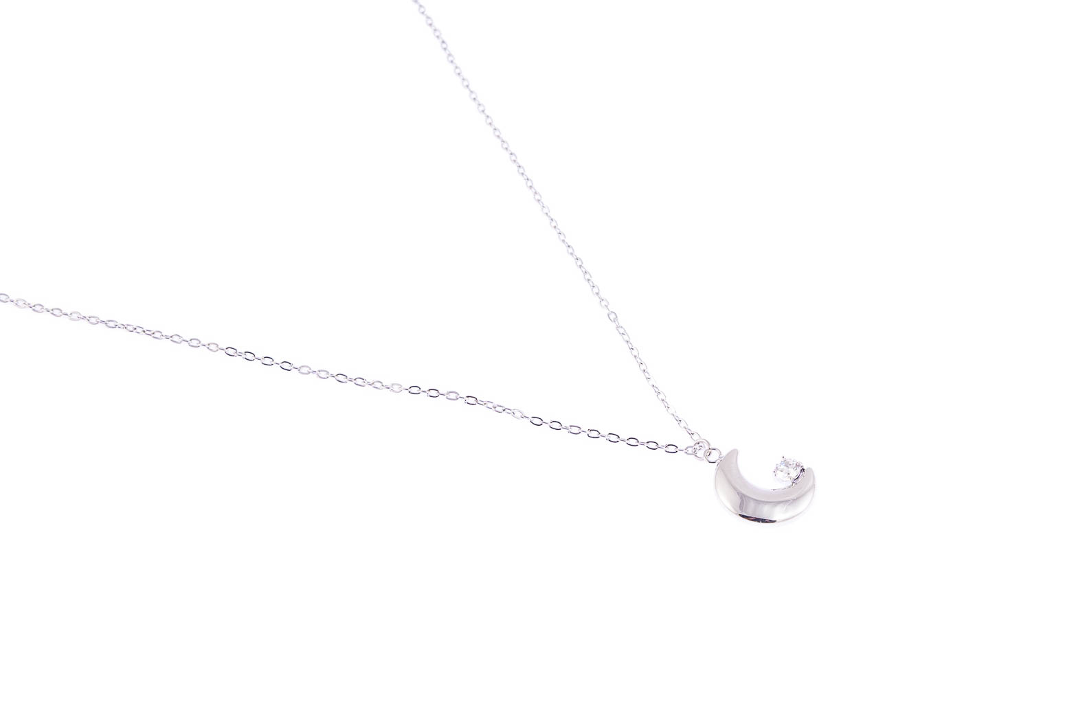 Elegancki łańcuszek z uroczą przywieszką w kształcie księżyca. Naszyjnik jest w kolorze srebrnym.Wymiary naszyjnika: