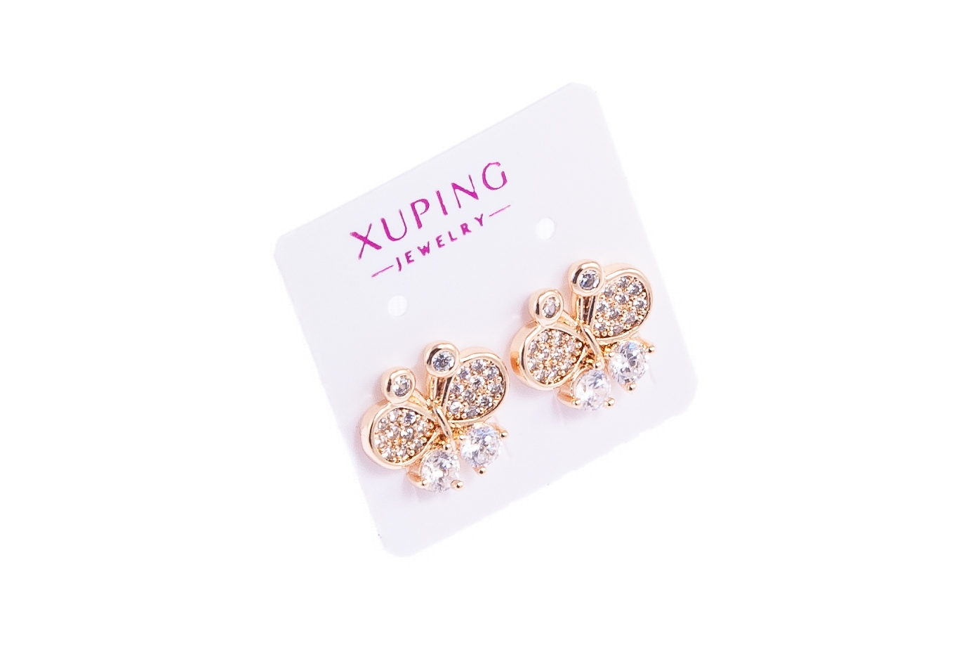 Eleganckie kolczyki w kształcie motylków. Kolczyki w złotym kolorze, ozdobione pięknie mieniącymi się kamieniami.Wymiary kolczyków:
