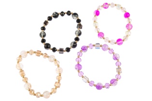 Elegancka bransoletka wykonana ze szlifowanych koralików i koralików z pękanego szkła.Zestaw składa się z czterech kolorów: biały, różowy, niebieski i czerwony.