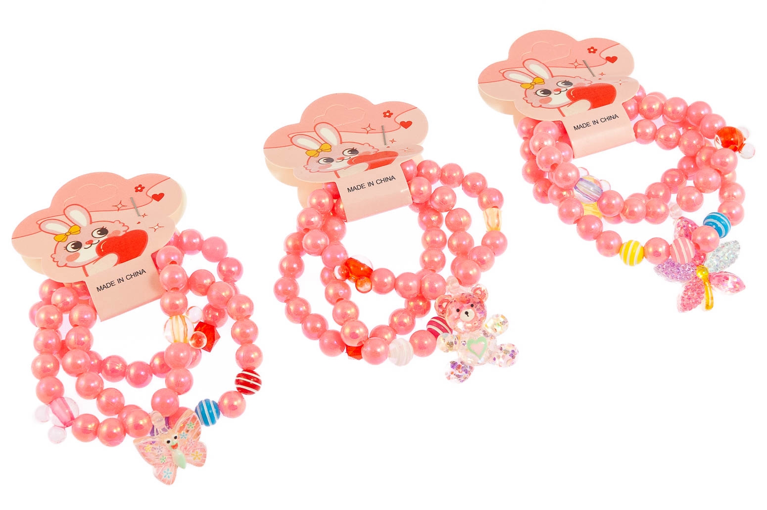 Urocza bransoletka wykonana z koralików i przywieszki.Zestaw składa się z trzech wzorów.