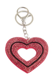 Elegancki brelok w kształcie kokardki, ozdobiony dżetami w kolorze różowym.