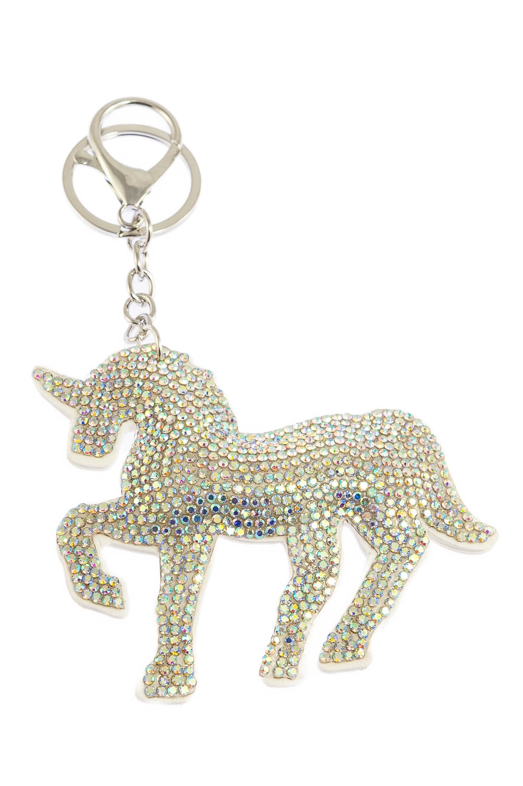 Elegancki brelok w kształcie jednorożca, ozdobiony dżetami w kolorze białym.Brelok idealnie nada się na prezent, który ucieszy każde dziecko.