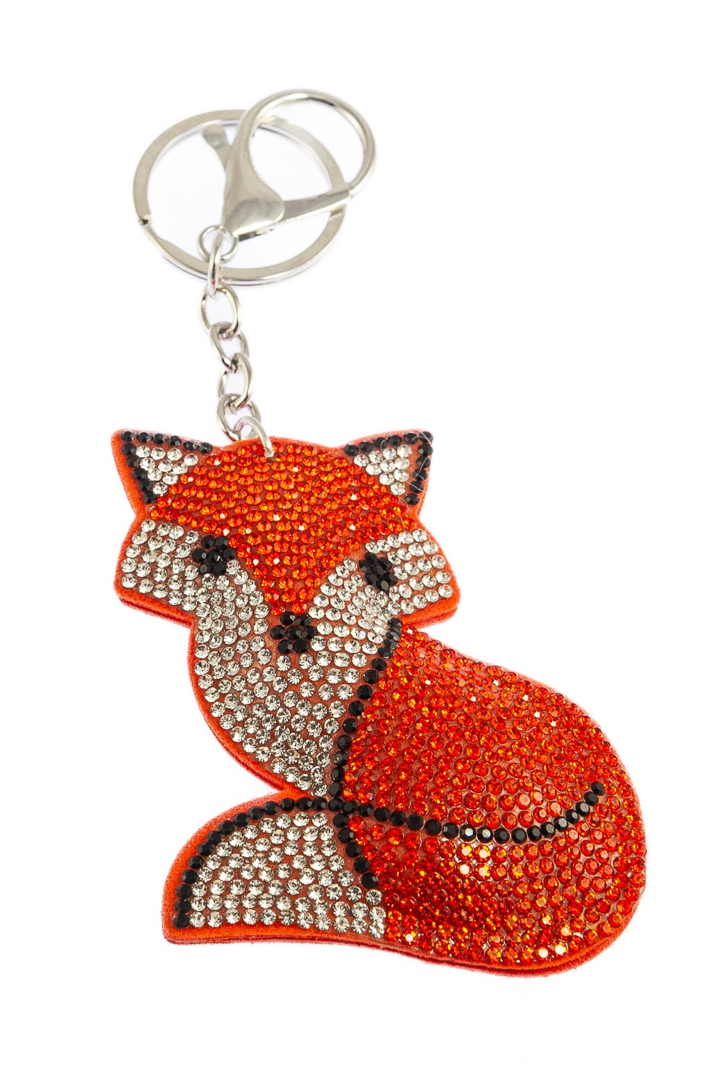 Elegancki brelok w kształcie lisa, ozdobiony dżetami w kolorze pomarańczowym.Brelok idealnie nada się na prezent, który ucieszy każde dziecko.