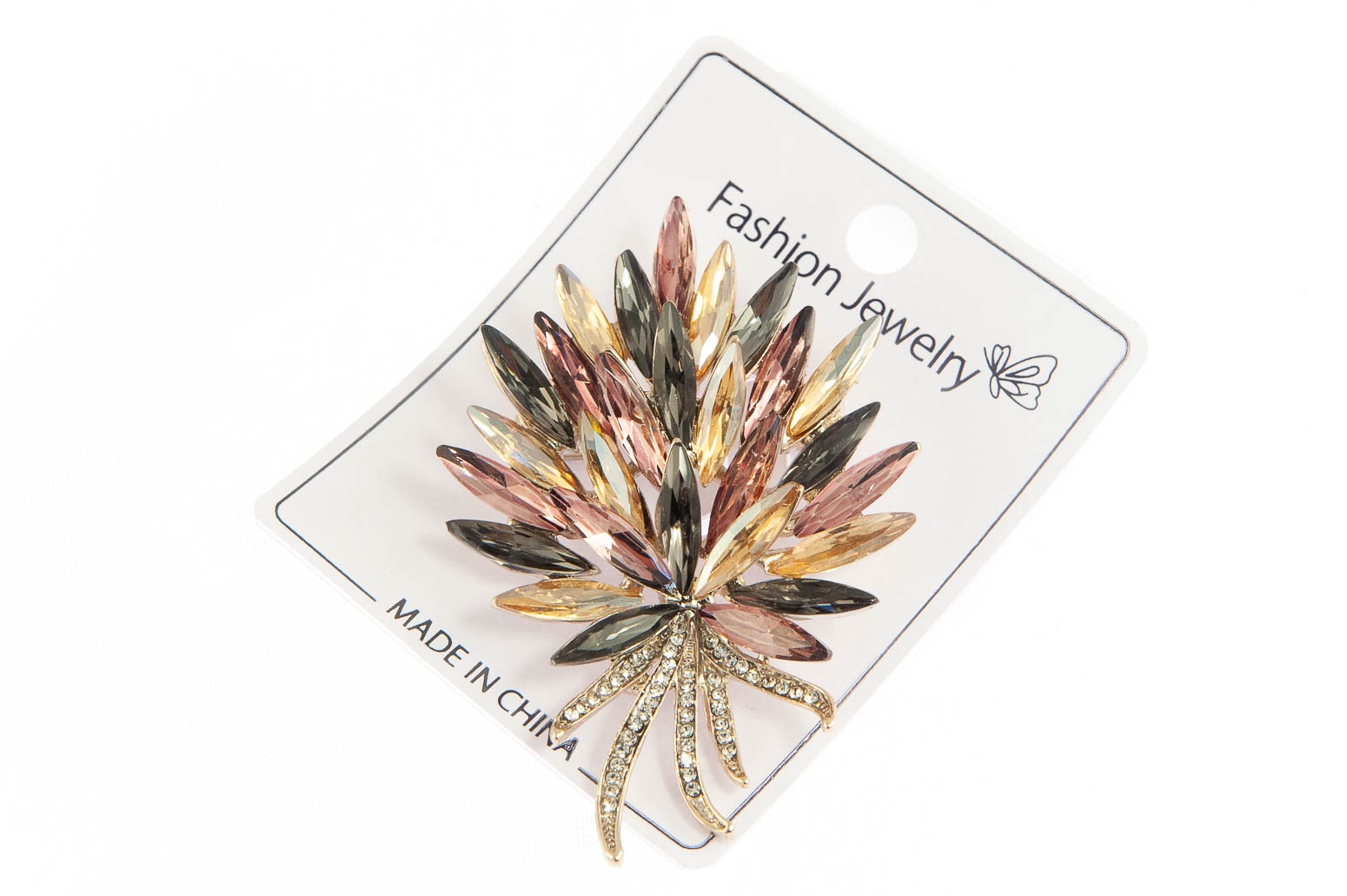 Elegancka broszka. Przywieszka w kolorze złotym, ozdobiona szlifowanymi kamieniami.Ozdoba doda szyku każdej stylizacji.