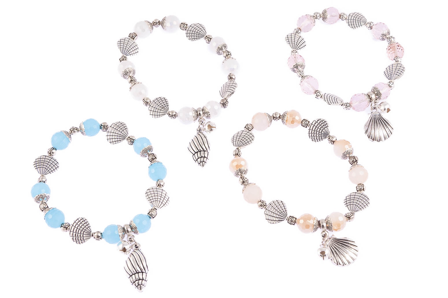 Elegancka bransoletka wykonana ze szlifowanych koralików i muszelek.Bransoletka pięknie się mieni i posiada uroczą przywieszę w kształcie muszli.