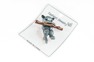 Elegancka broszka w kształcie lisa. Przywieszka w kolorze złotym, ozdobiona szlifowanymi kamieniami i brązową emalią.