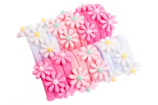 Klasyczna gumka z uroczą ozdobą – miłym w dotyku pomponem z dżetowym kwiatkiem.