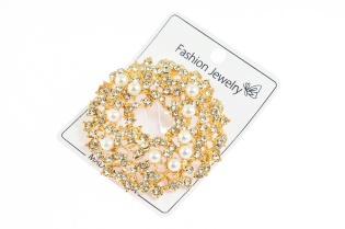 Elegancka broszka w kolorze złotym, ozdobiona szlifowanymi kamieniami i perłą.Broszka doda szyku każdej stylizacji.