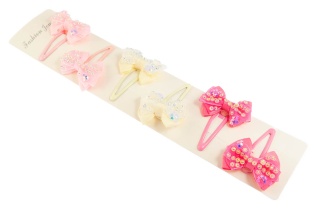 Klasyczne spinki do włosów z uroczą ozdobą w kształcie kokardki.Zestaw składa się z trzech kolorów: beżowy, jasny i ciemny różowy.