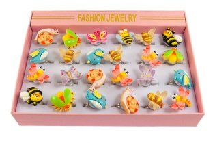 Dziecięce pierścionki w kolorze srebrnym z kolorowymi jednorożcamiPierścionki posiadają regulację średnicy.