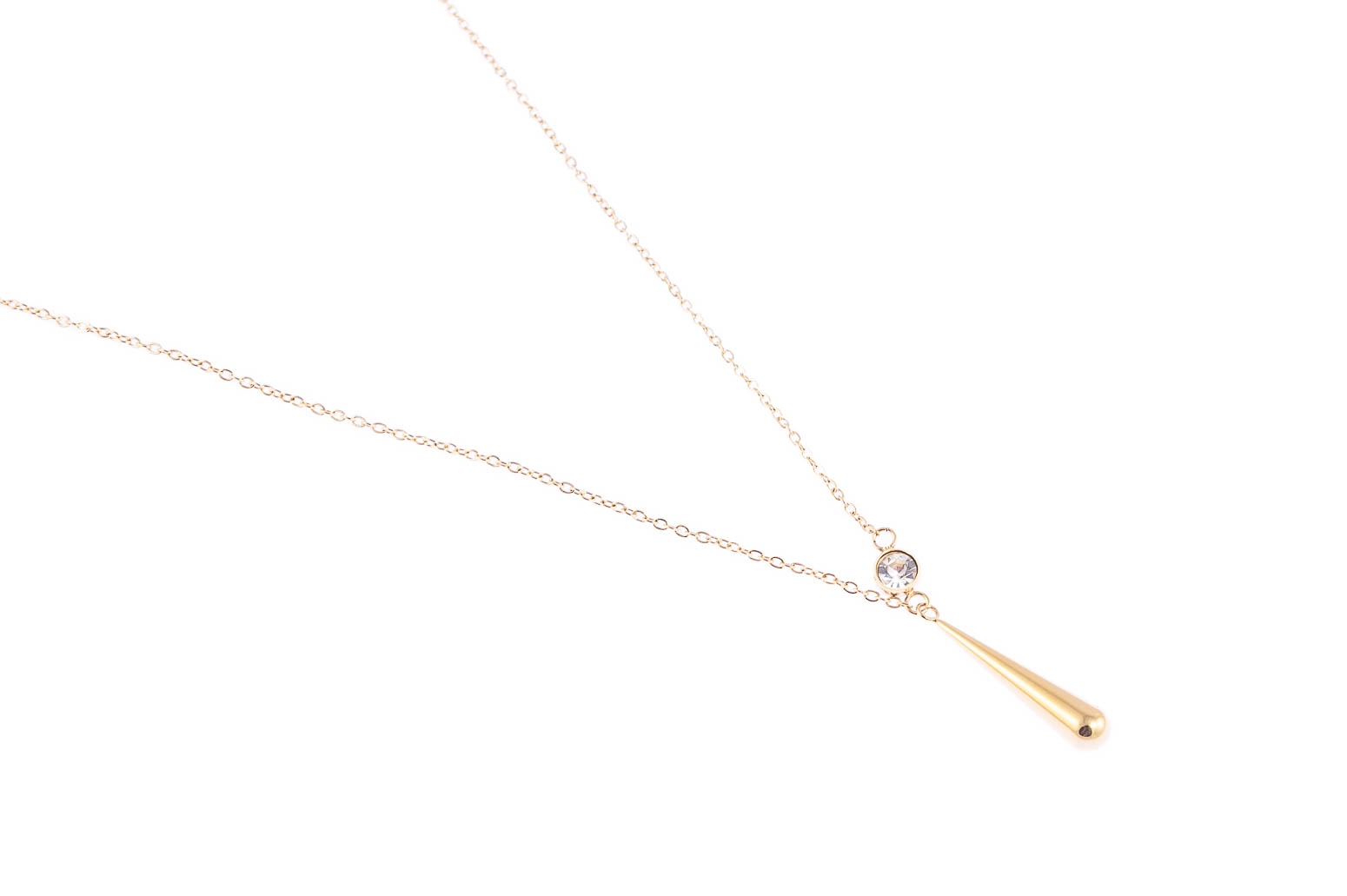 Elegancki łańcuszek z przywieszką ozdobioną pięknie mieniącymi się kamieniami. Naszyjnik jest w kolorze złotym.Wymiary naszyjnika: