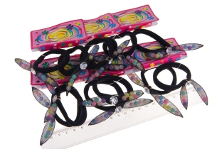 Gumki do włosów z pomponem ozdobionym różą w kolorach:białym,jasnoróżowym,różowym