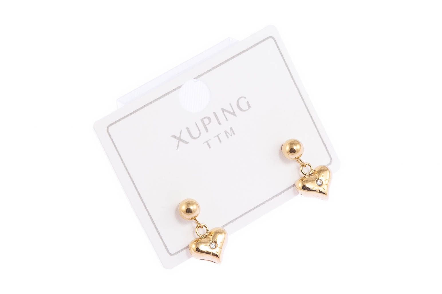 Eleganckie kolczyki w kształcie serduszek, ozdobine mieniącym się dżetem. Kolczyki w kolorze złotym.Wymiary kolczyków: